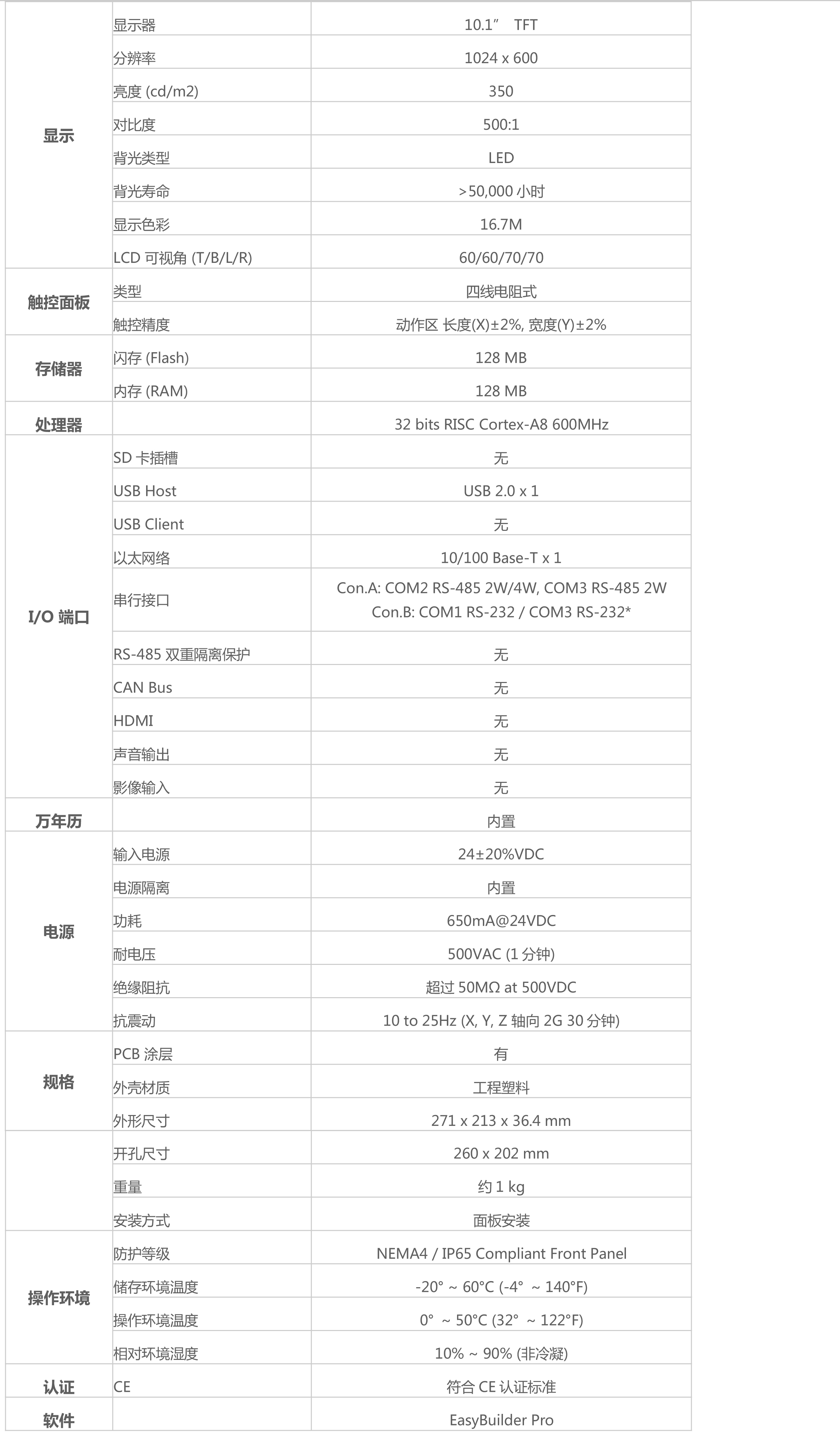 10.1" 1024x600 TFT LCD,LED背光